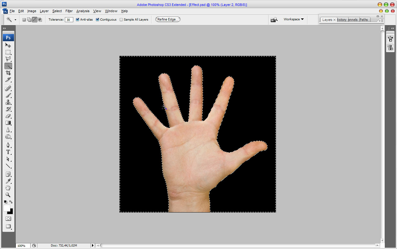 Then use Magic Wand Tool to divide palm from the white background. Press Delete to clear selected area.