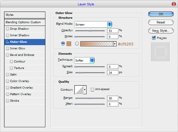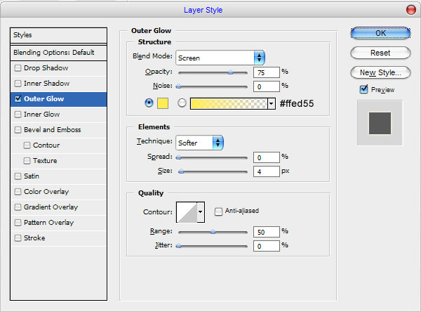 Ok and the last one step. Go to the layer with palm and set up fill opacity to 0% for this layer. Then apply Outer glowlayer style to it.