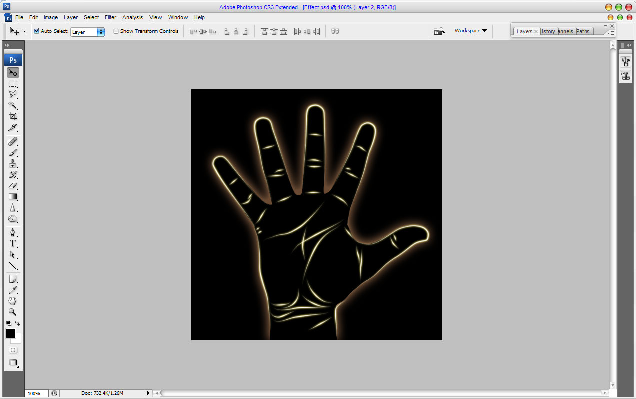 Remove selection with Ctrl+D and begin creating the effect. Now, before we can start making glow parts of palm, I would like to note you that you have to get out the Brush Tool before and set up with the following settings: